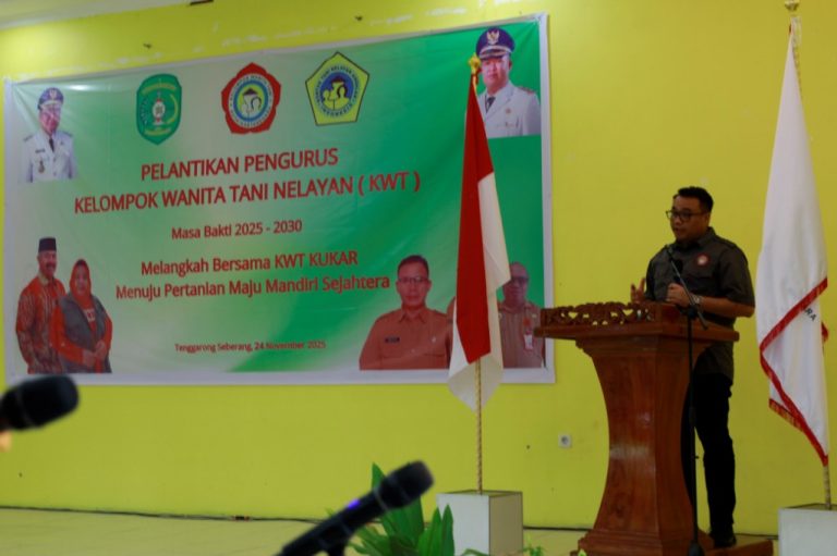 TENGGARONG – Bupati Kutai Kartanegara (Kukar) Aulia Rahman Basri melantik Ketua Umum dan Pengurus Kelompok Wanita Tani Nelayan (KWT) Kabupaten Kukar masa bakti 2025–2030 pada acara yang berlangsung di Gedung Taman Teknologi Pertanian (TTP) Desa Bangun Rejo, Kecamatan Tenggarong Seberang, Senin (24/11). Pelantikan turut dihadiri Ketua Umum KTNA Kukar Edi Damansyah, anggota DPRD, forkopimcam, camat, kepala desa, serta tamu undangan lainnya.