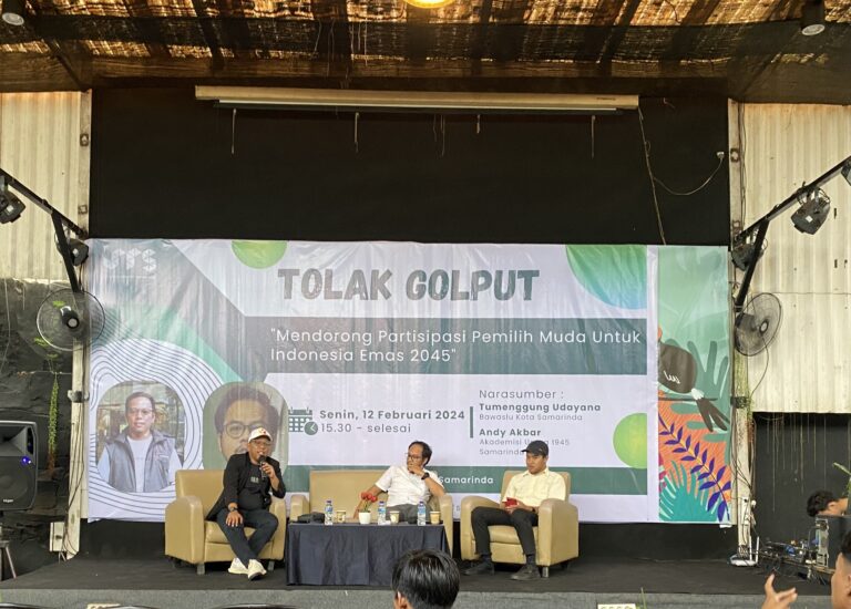 Portalborneo.or.id, Samarinda – Diskusi publik mengenai penolakan Golput (Golongan Putih) dalam rangka mendorong partisipasi pemilih muda di Pemilu 14 Februari 2024 telah berlangsung di Bagios Kafe Samarinda, Senin (12/2/2024).